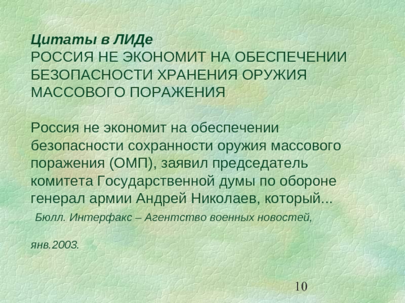 Бюлл. Интерфакс – Агентство военных новостей, янв.2003.