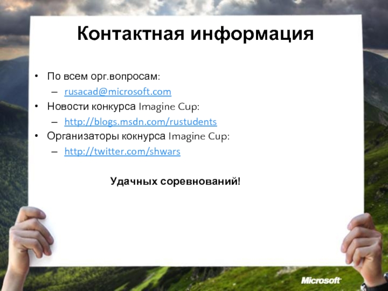Следите за новостями на http://blogs.msdn.com/rustudents