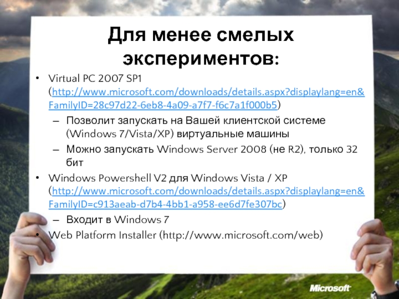 Вашей клиентской системе (Windows 7/Vista/XP) виртуальные машины