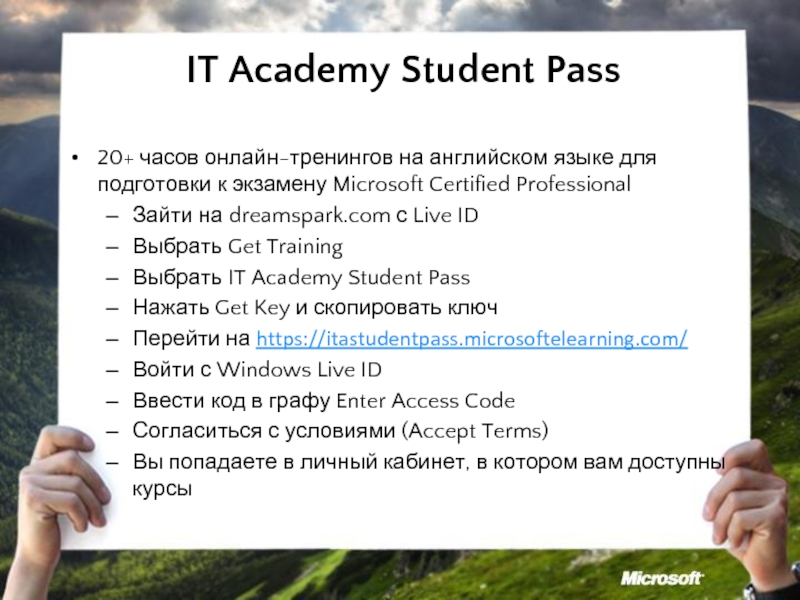 Перейти на https://itastudentpass.microsoftelearning.com/