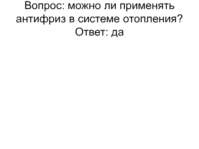 Слайд 11Вопрос: можно ли применять антифриз в системе отопления? Ответ: да