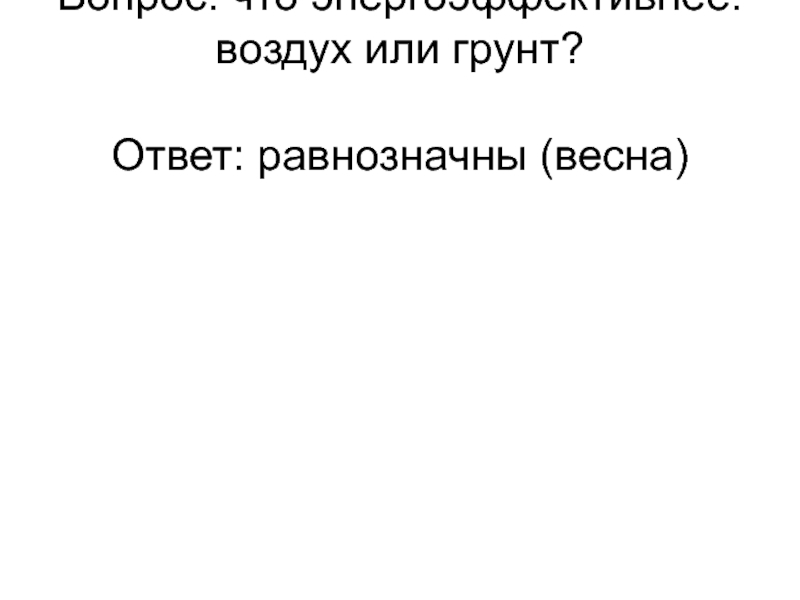 Слайд 8Вопрос: что энергоэффективнее: воздух или грунт? Ответ: равнозначны (весна)