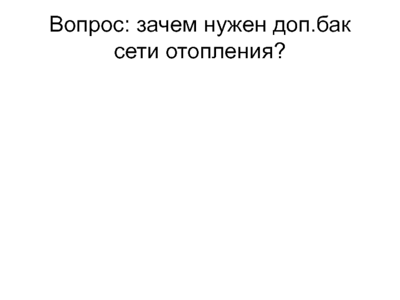 Слайд 13Вопрос: зачем нужен доп.бак сети отопления?