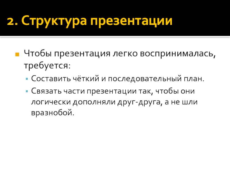 части презентации так, чтобы они логически дополняли друг-друга, а не шли вразнобой.