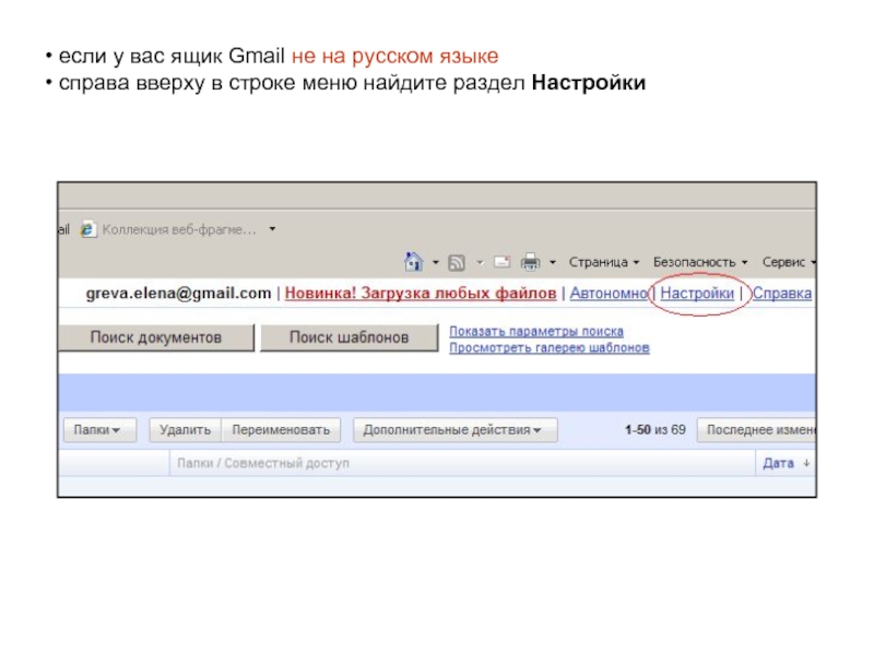 Слайд 3 если у вас ящик Gmail не на русском языке