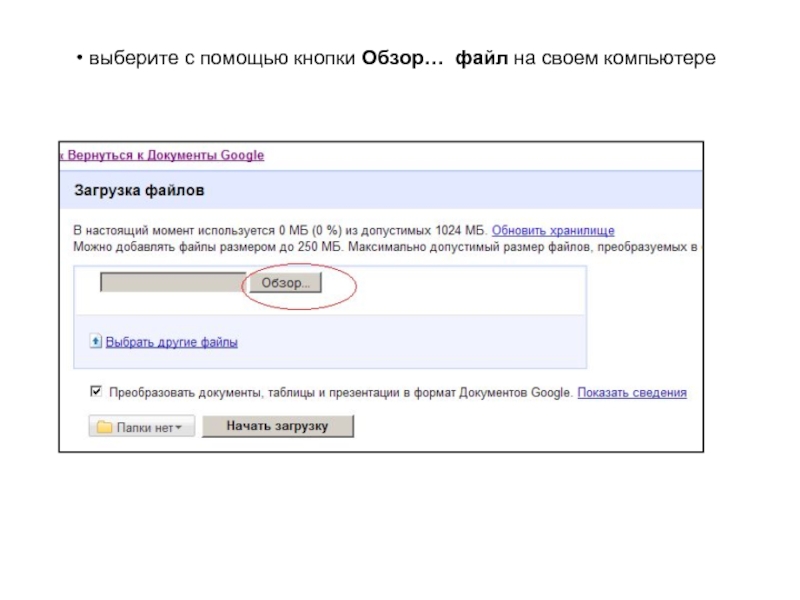 Слайд 7 выберите с помощью кнопки Обзор… файл на своем компьютере