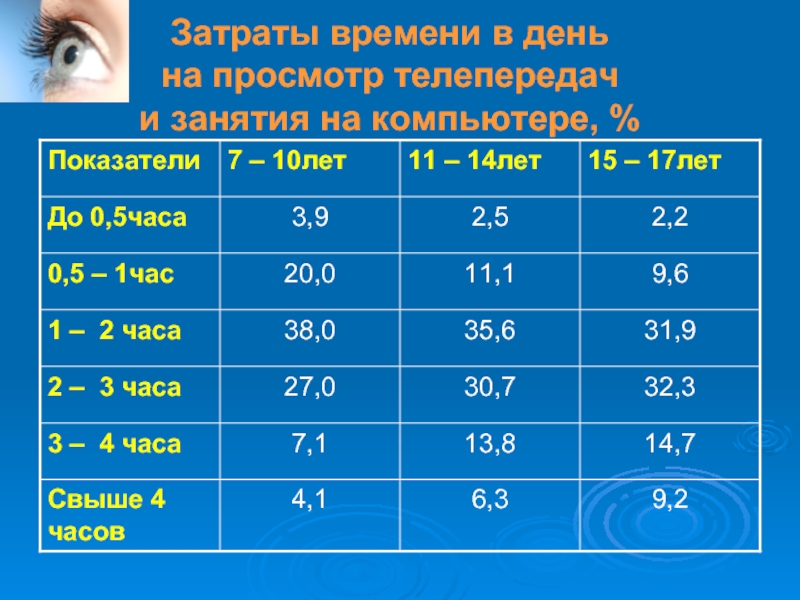 Слайд 6Затраты времени в день