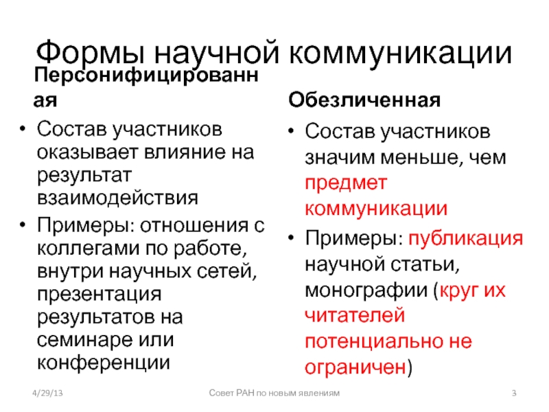 Примеры: публикация научной статьи, монографии (круг их читателей потенциально не ограничен)