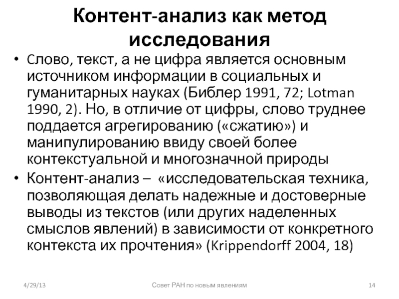 Предметом исследования служат различия в восприятии текста автором и читателями-коллегами, изученные с помощью компьютерных программ для контент-анализа QDA Miner и WordStat