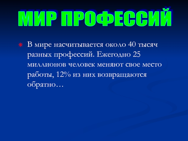 В мире насчитывается около 40 тысяч разных профессий. Ежегодно 25 миллионов