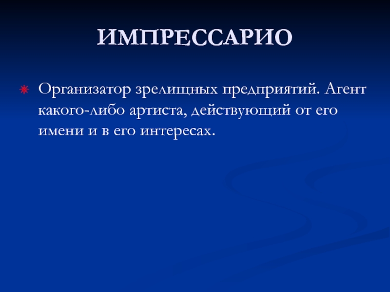 Слайд 9ИМПРЕССАРИО