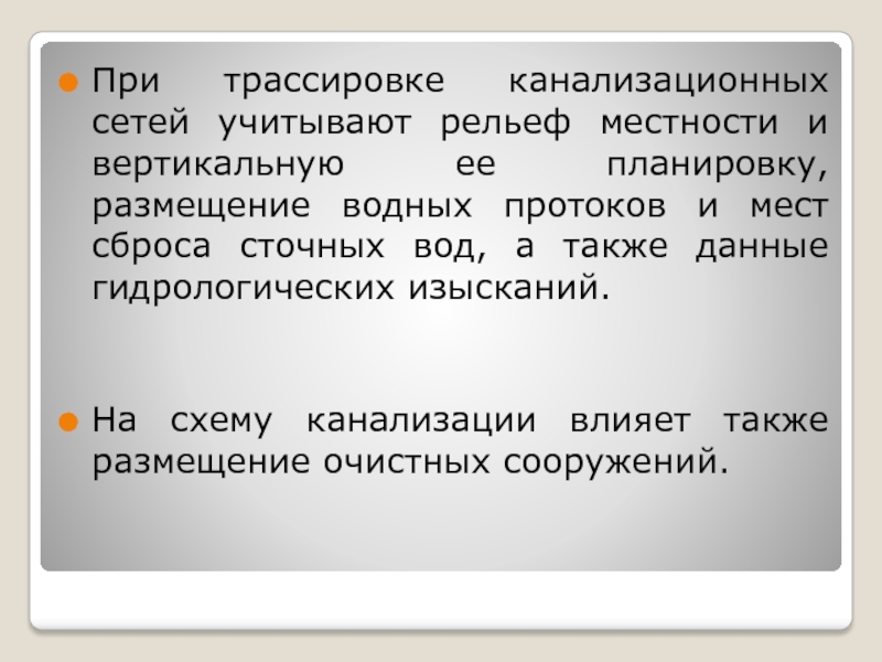 Слайд 25При составлении схемы канализации необходимо учитывать ряд факторов: