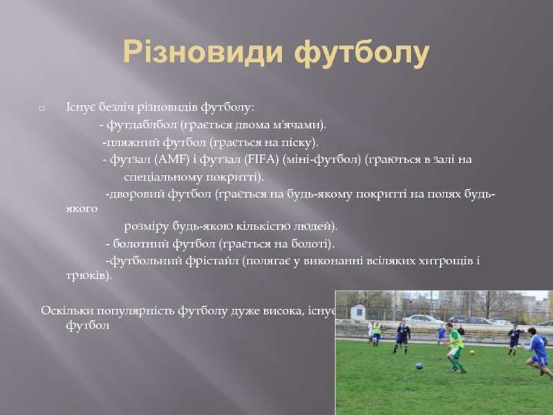 -дворовий футбол (грається на будь-якому покритті на полях будь-якого