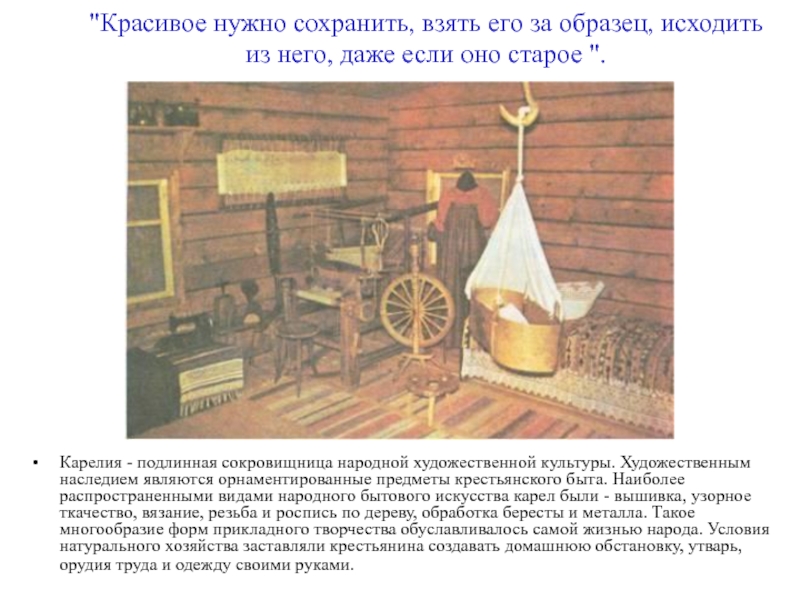 Слайд 2"Красивое нужно сохранить, взять его за образец, исходить из него, даже