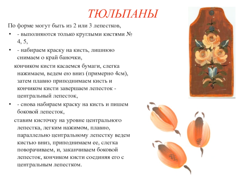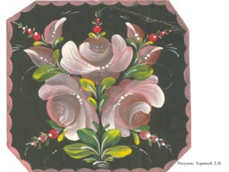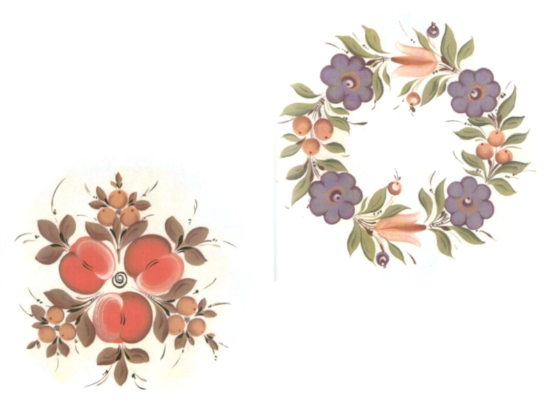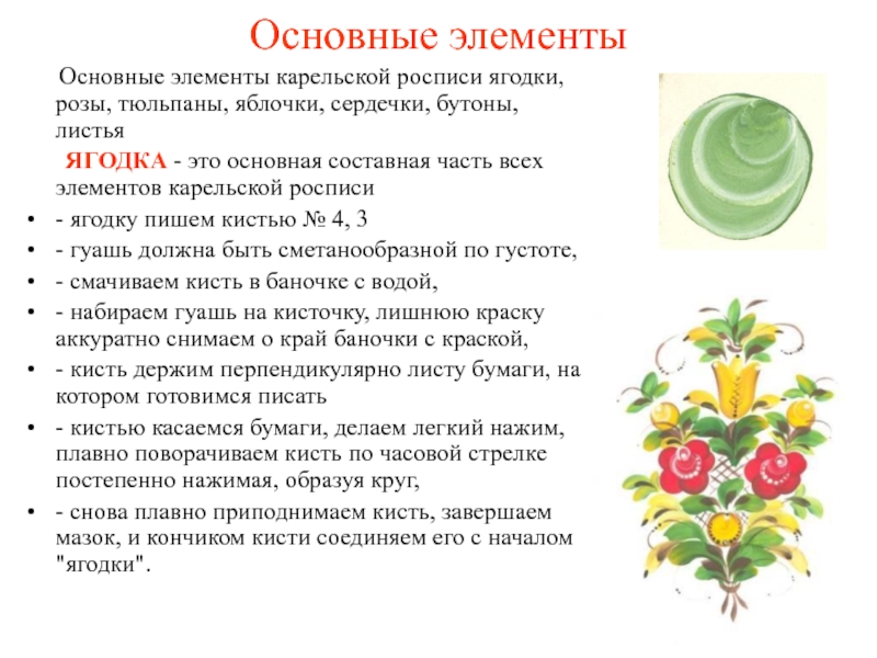 Основные элементы карельской росписи ягодки, розы, тюльпаны,