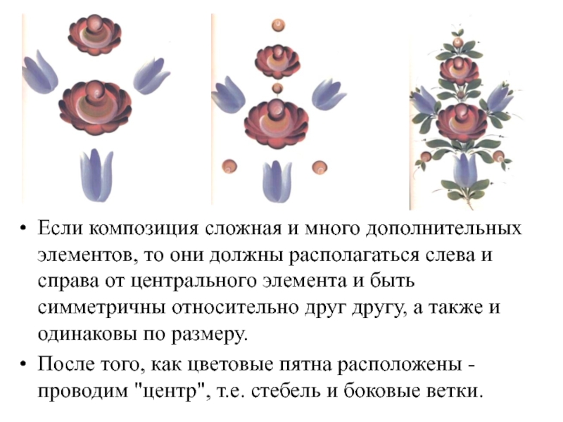 Если композиция сложная и много дополнительных элементов, то они должны располагаться
