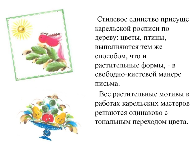 Стилевое единство присуще карельской росписи по дереву: цветы,