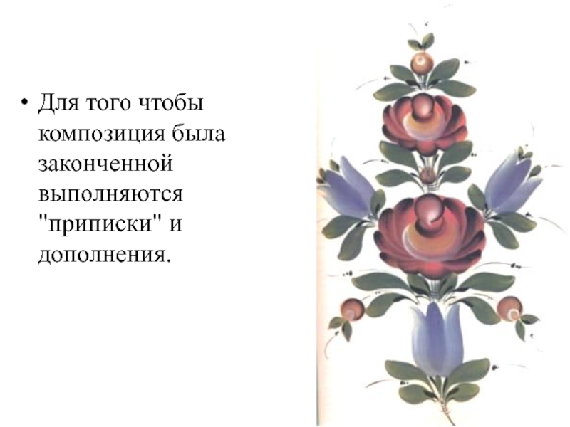 Для того чтобы композиция была законченной выполняются "приписки" и дополнения.