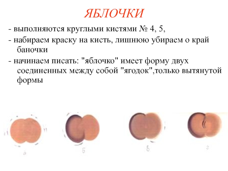 - начинаем писать: "яблочко" имеет форму двух соединенных между собой "ягодок",только вытянутой формы