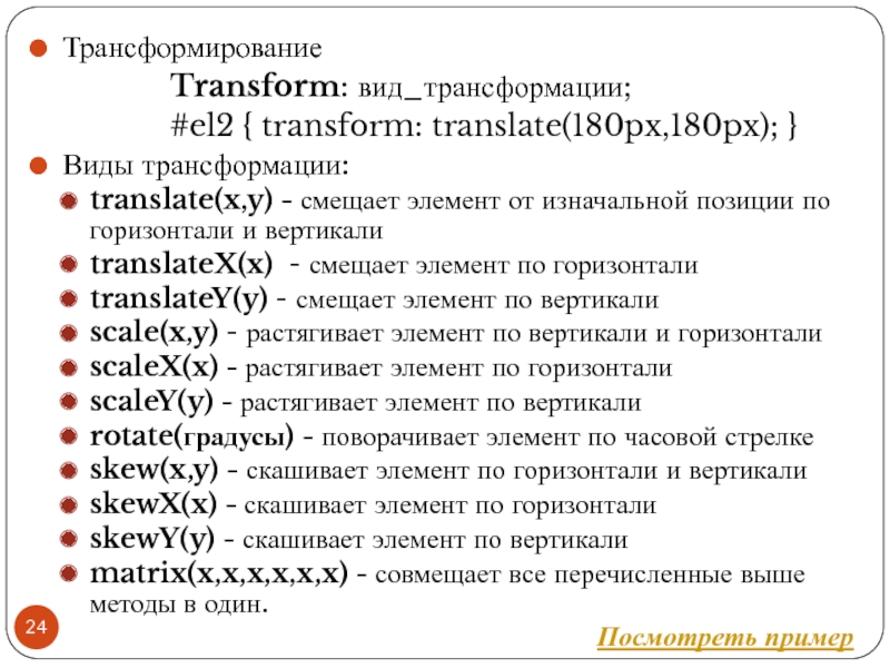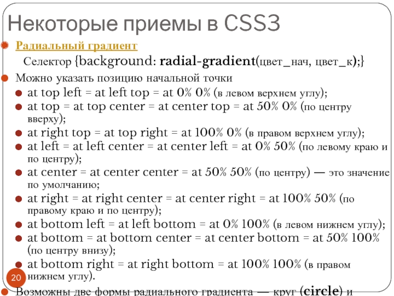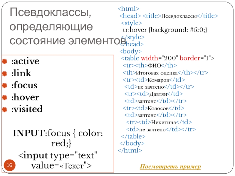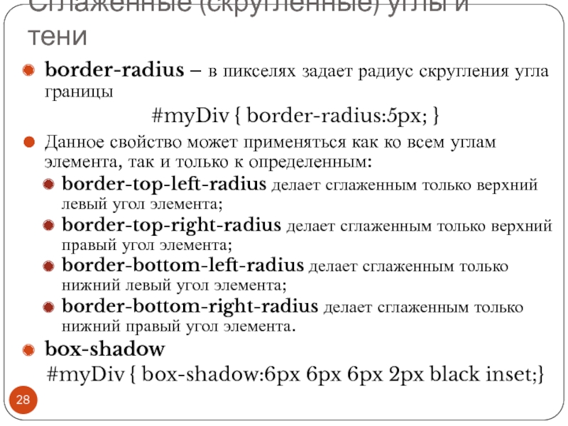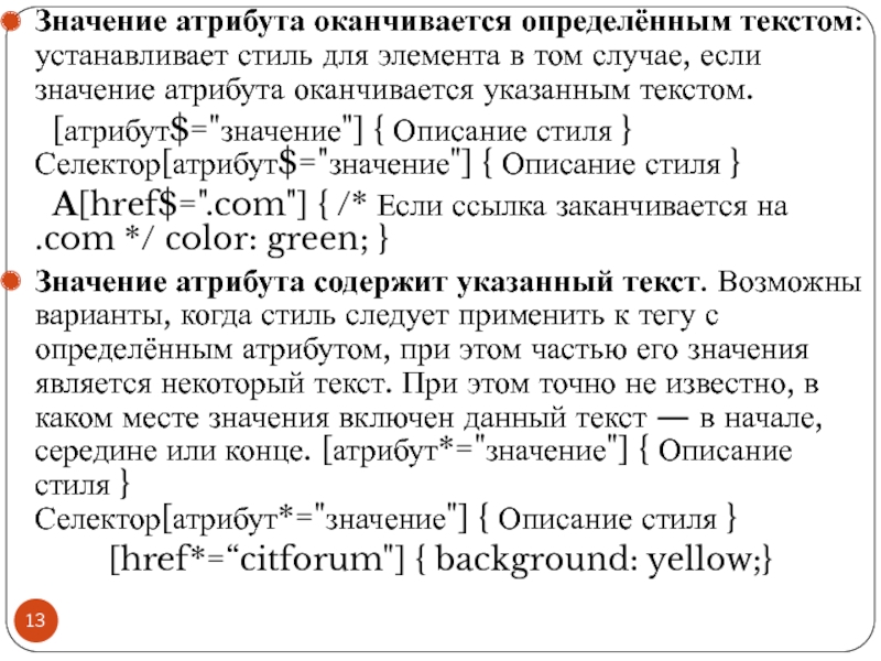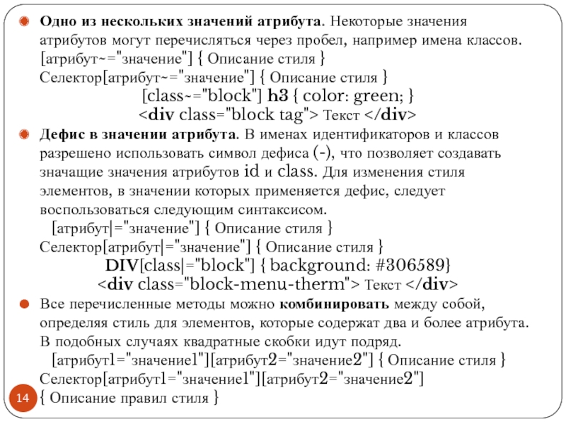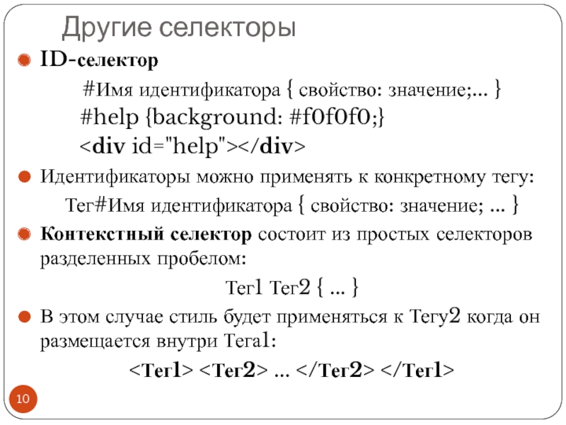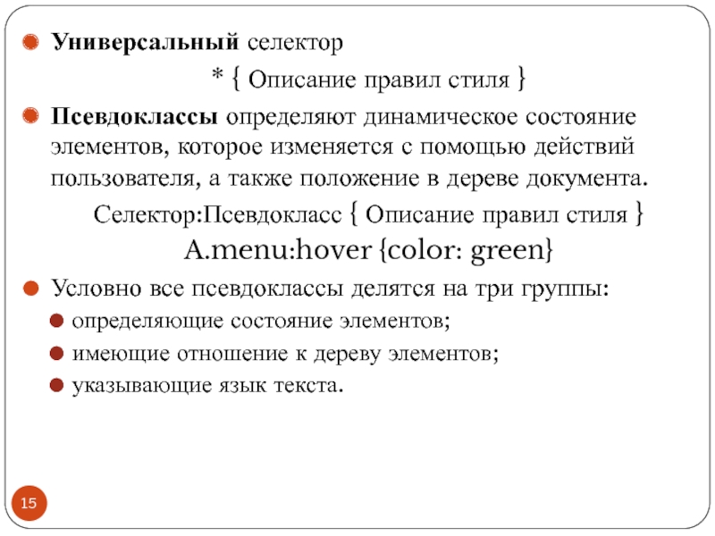 Файл со стилем: H1 { color: #000080; font-size: 200%; font-family: Arial, Verdana, sans-serif; text-align: center; } P { padding-left: 20px; } Глобальные стили - свойства CSS описываются в самом документе и располагаются в заголовке веб-страницы в тегах