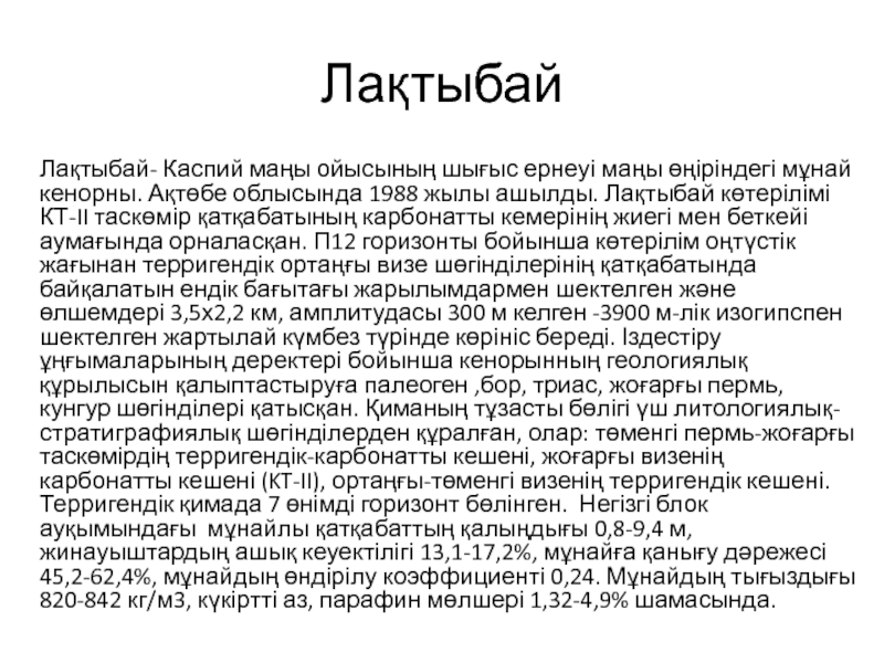 Лақтыбай- Каспий маңы ойысының шығыс ернеуі маңы өңіріндегі мұнай кенорны. Ақтөбе