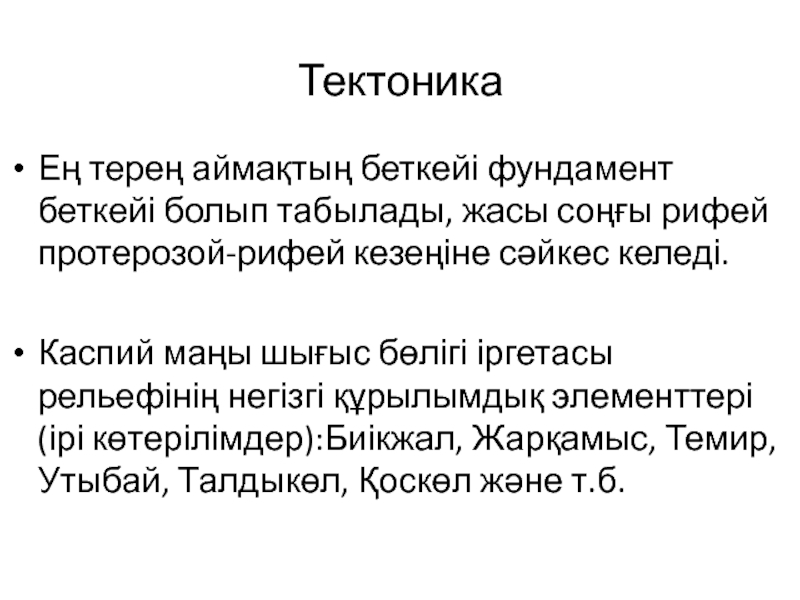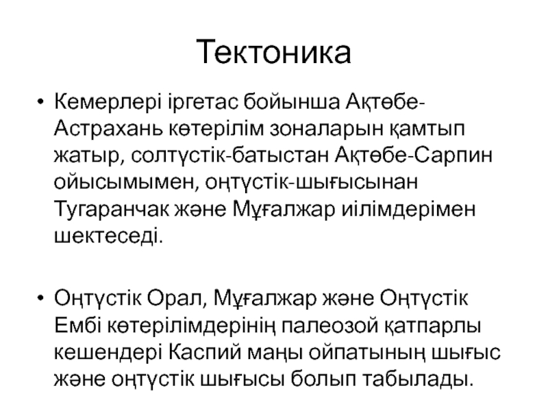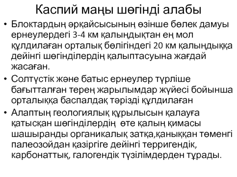Слайд 1Каспий маңы шығыс бөлігінің геологиялық құрылысы және мұнайгаздылығы