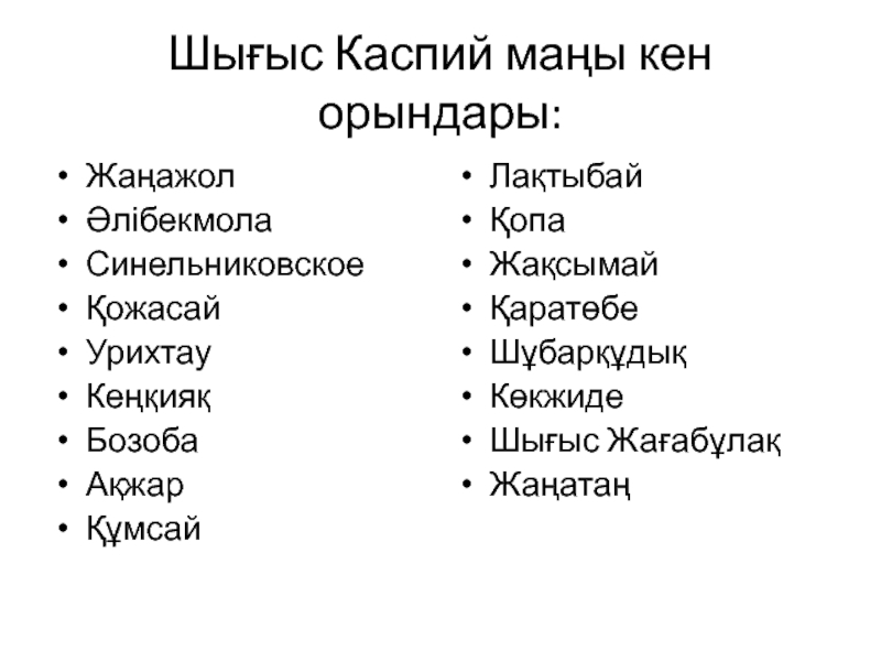 Слайд 13Шығыс Каспий маңы кен орындары:
