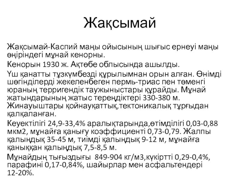 Жақсымай-Каспий маңы ойысының шығыс ернеуі маңы өңіріндегі мұнай кенорны.