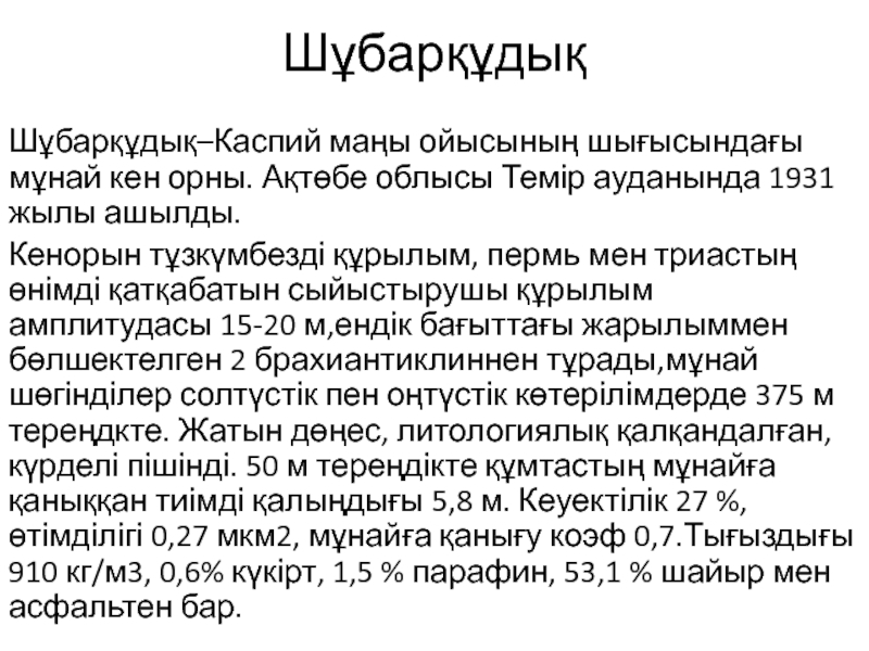 Слайд 31Шұбарқұдық