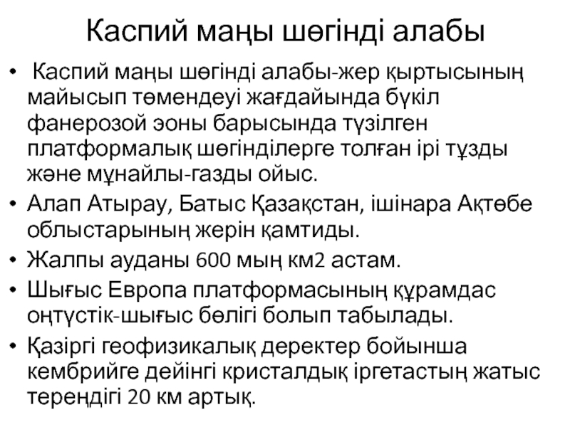 Слайд 2Каспий маңы шөгінді алабы