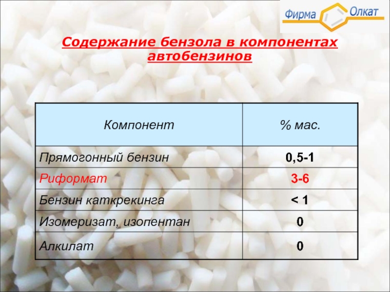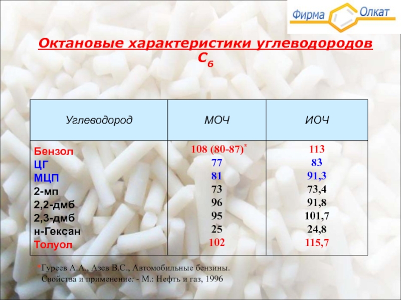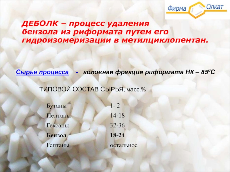 Сырье процесса - головная фракция риформата НК – 850С