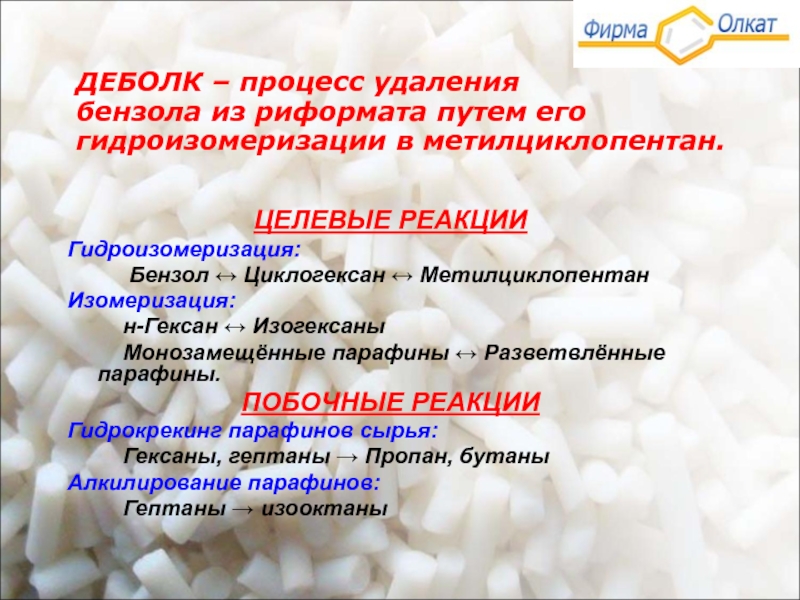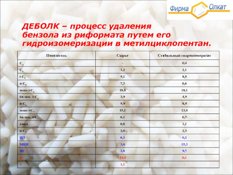 Принципиальная схема процесса гидроизомеризации бензола – «ДЕБОЛК»