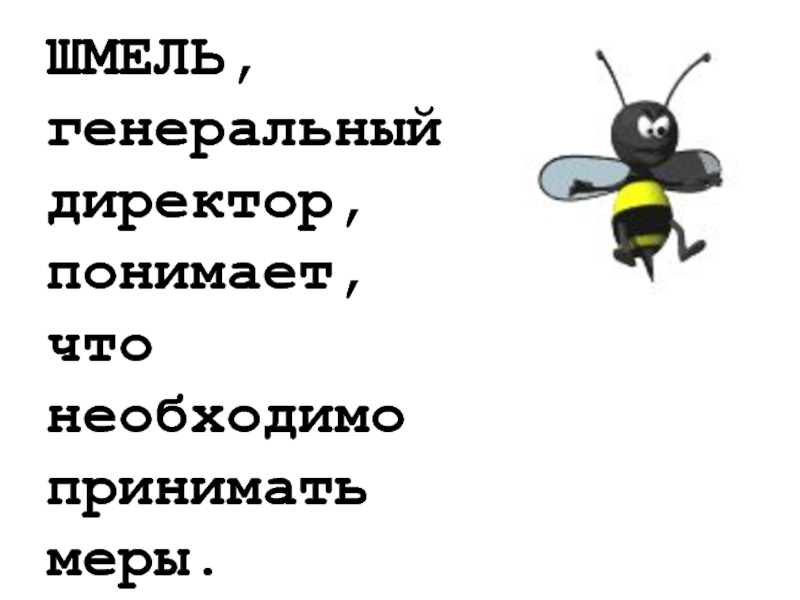 Слайд 13ШМЕЛЬ, генеральный директор, понимает, что необходимо принимать меры.