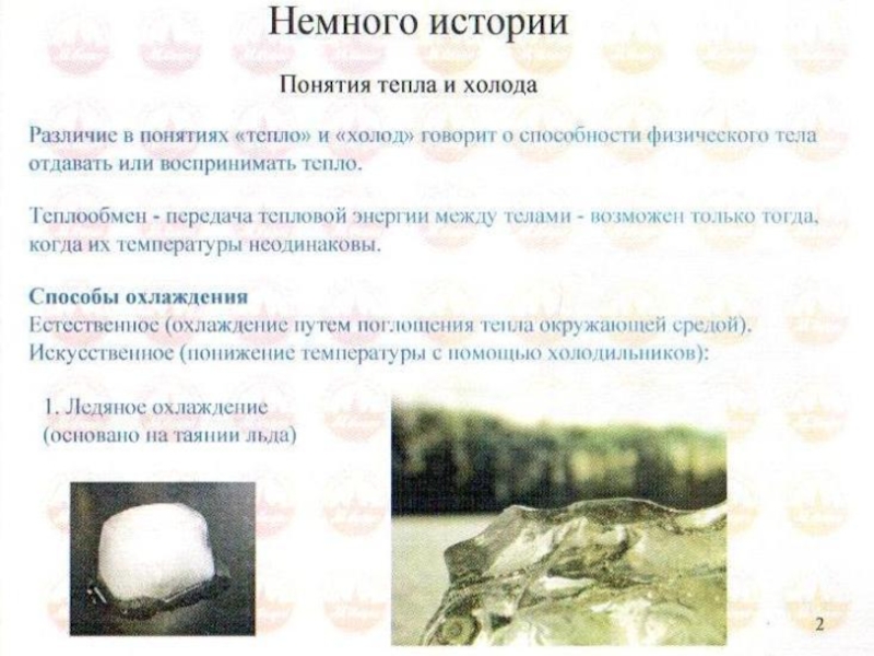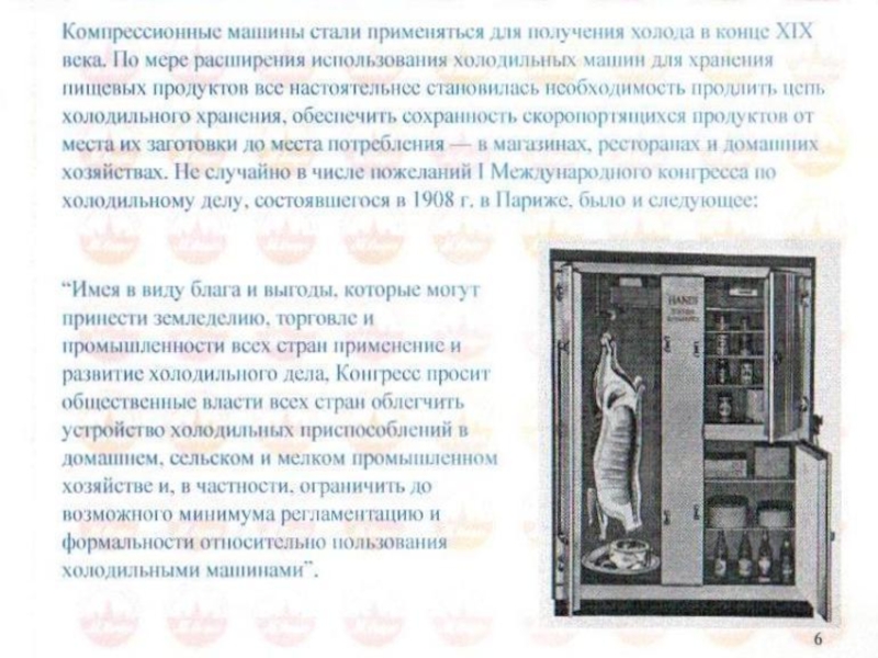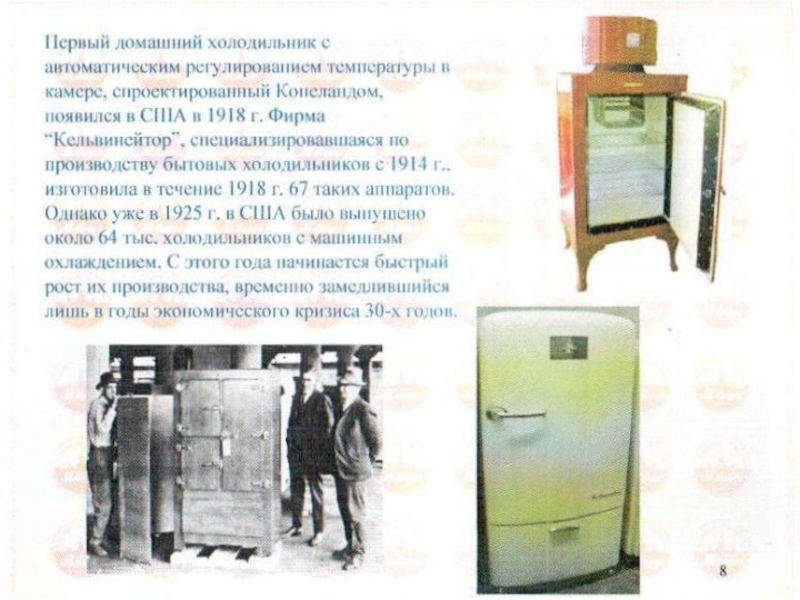 холодильные машины, которые отбирают тепло от охлаждаемого объекта и передают его в более теплую окружающую среду. Различают паровые и термоэлектрические холодильники.