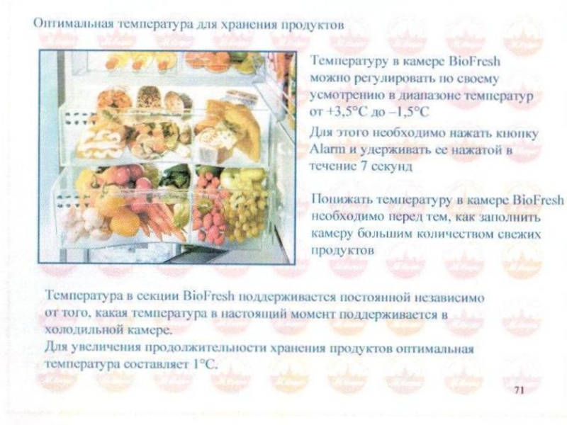 *** - -18С (для продолжительного хранения продуктов глубокой заморозки: от нескольких месяцев до года; для заморозки свежих продуктов);