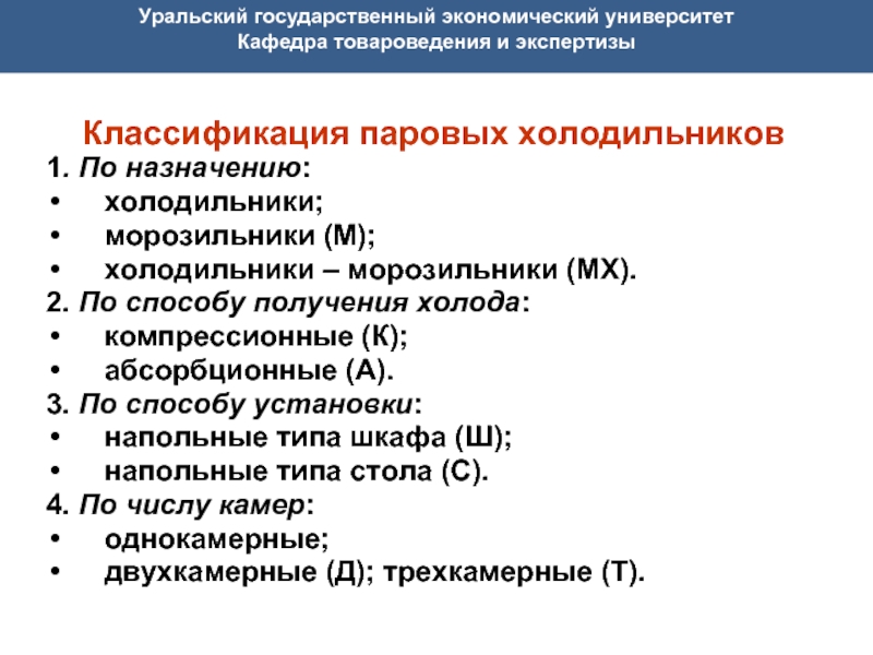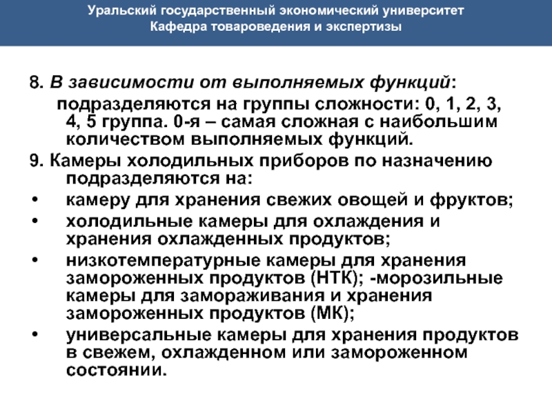 9. Камеры холодильных приборов по назначению подразделяются на: