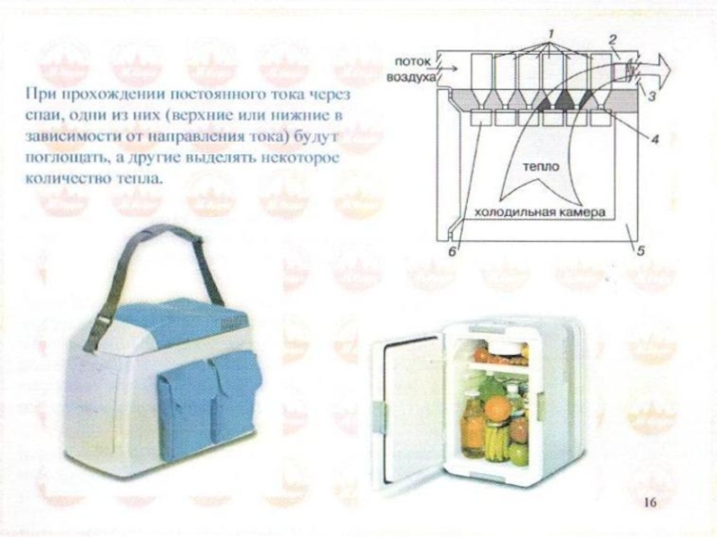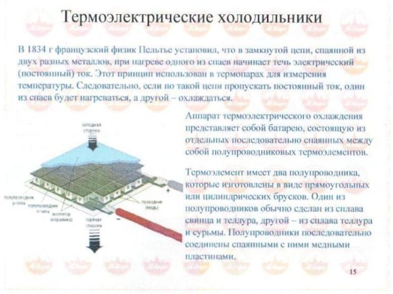 5. Устройство, принцип работы термоэлектрических холодильников.