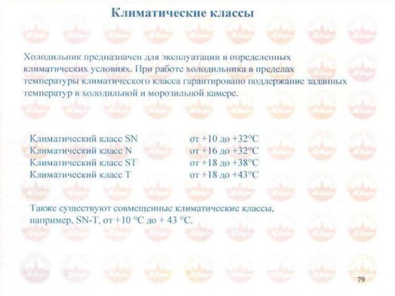 для холодильников: SN, N – не выше +32С; ST – не выше +38С; T – не выше 43С.
