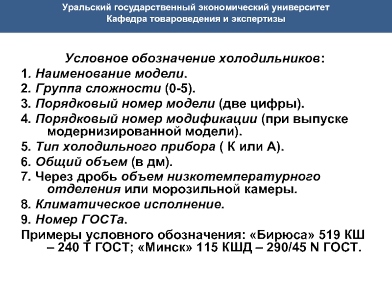 Примеры условного обозначения: «Бирюса» 519 КШ – 240 Т ГОСТ; «Минск» 115 КШД – 290/45 N ГОСТ.
