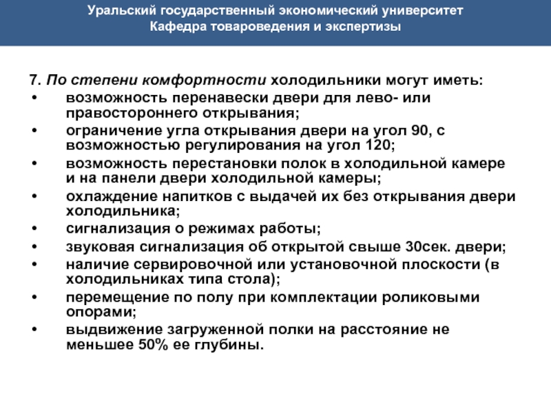 7. Основные технические параметры, требования к качеству бытовых холодильников.