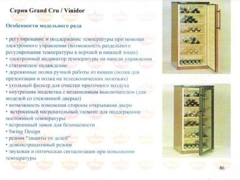 охлаждение напитков с выдачей их без открывания двери холодильника;