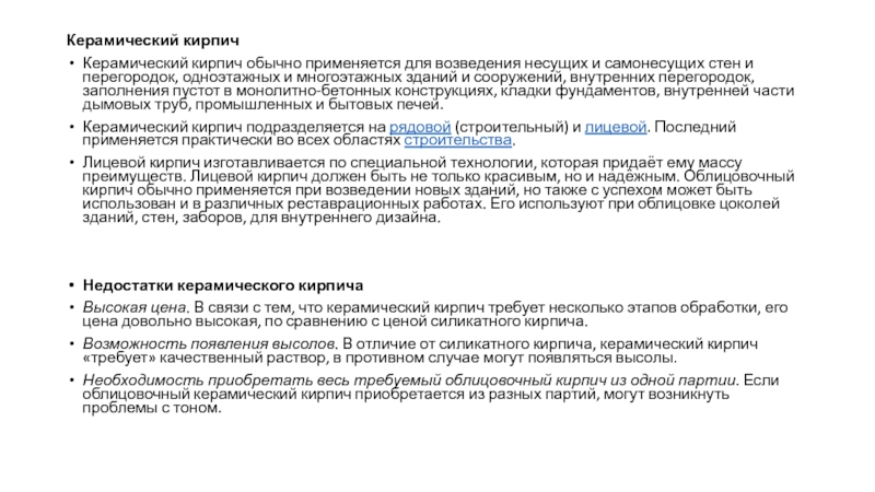 Возможность появления высолов. В отличие от силикатного кирпича, керамический кирпич «требует» качественный раствор, в противном случае могут появляться высолы.