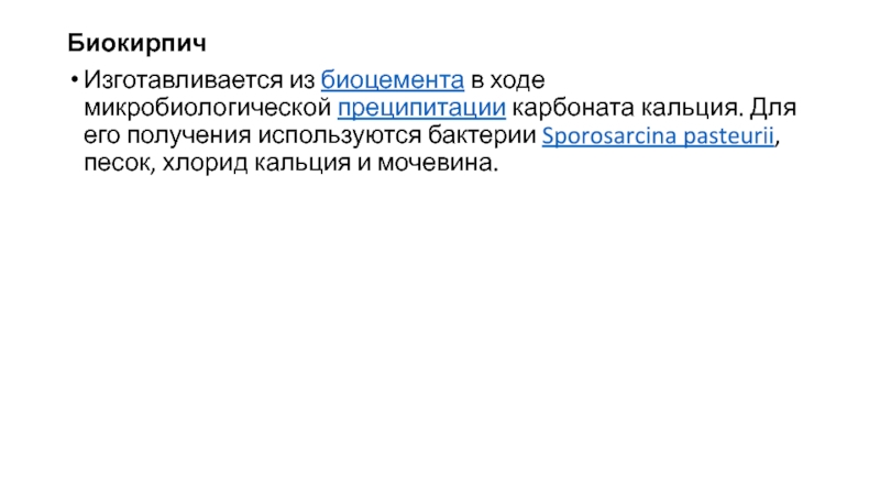 Изготавливается из биоцемента в ходе микробиологической преципитации карбоната кальция. Для его получения используются бактерии Sporosarcina pasteurii,