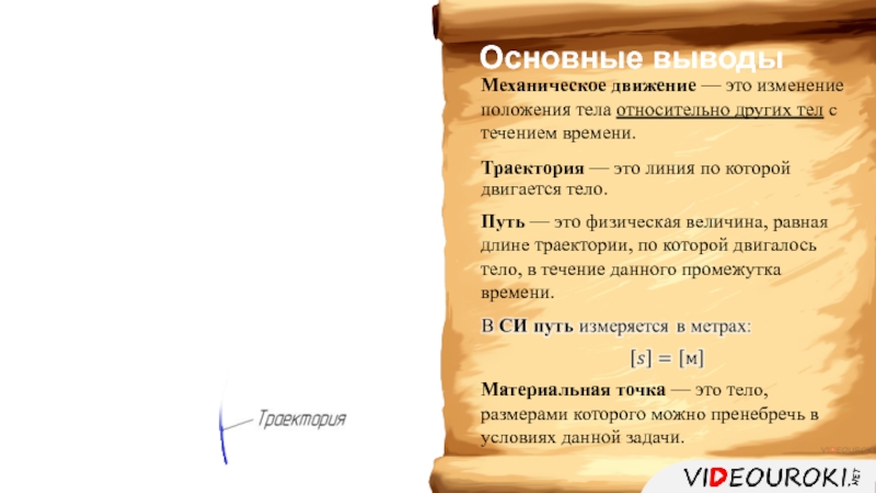 Путь — это физическая величина, равная длине траектории, по которой двигалось тело, в течение данного промежутка времени.