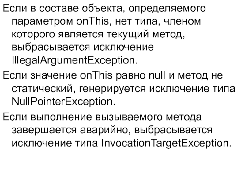 Если значение onThis равно null и метод не статический, генерируется исключение типа NullPointerException.