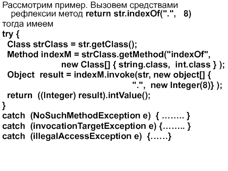 Слайд 11Рассмотрим пример. Вызовем средствами рефлексии метод return str.indexOf(".",  8)
