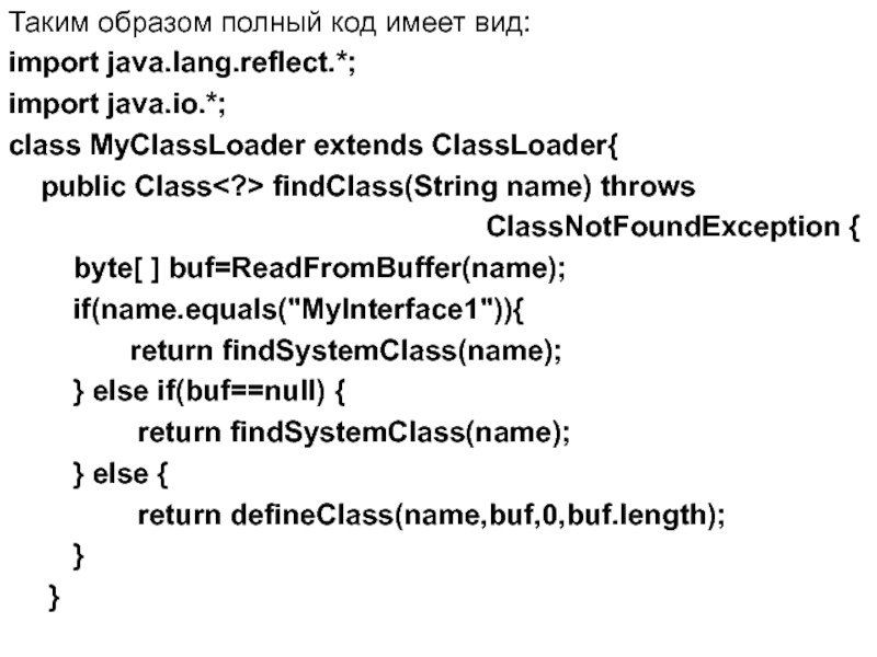 Таким образом, необходимо реализовать собственные версии следующих методов ClassLoader: