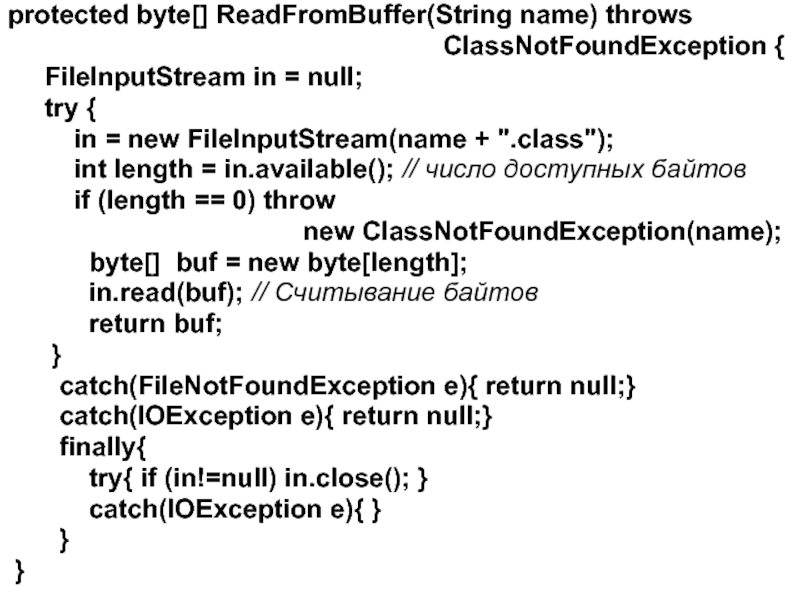 Слайд 44protected byte[] ReadFromBuffer(String name) throws