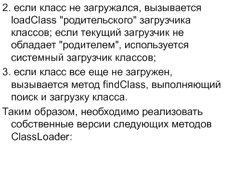 Слайд 372. если класс не загружался, вызывается loadClass "родительского" загрузчика классов; если