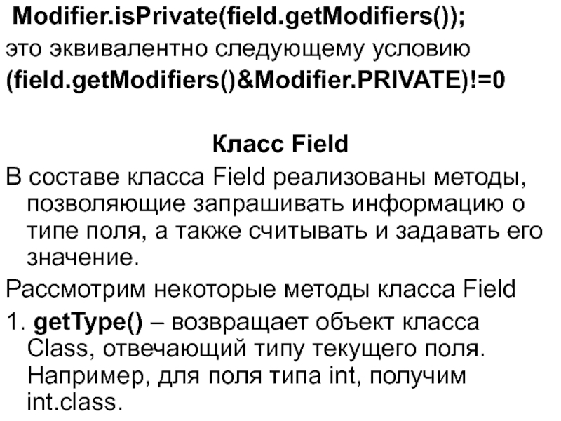 Слайд 4 Modifier.isPrivate(field.getModifiers());